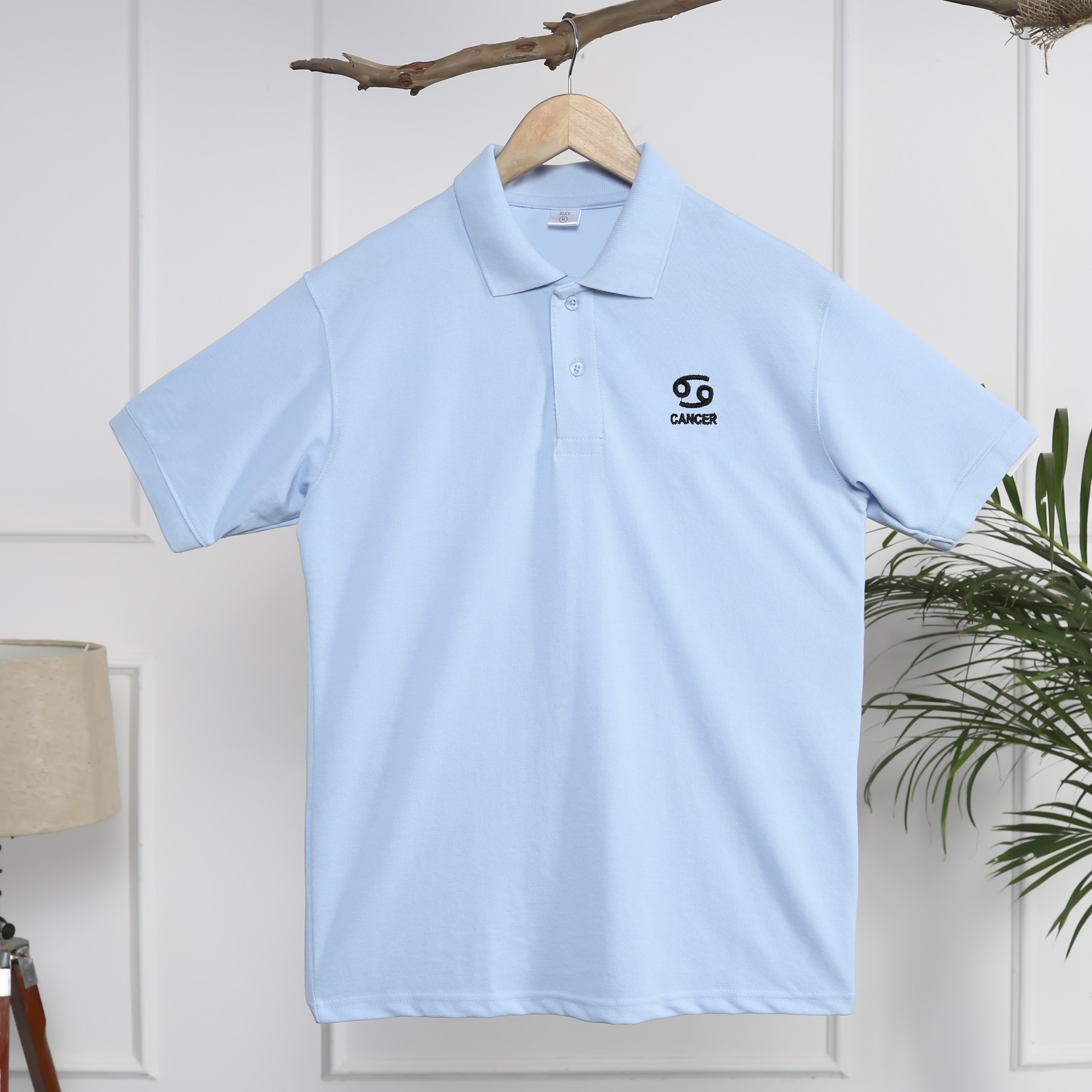 Polo Collar T-Shirt for Men – Aquarius Zodiac Edition (Sky Blue)