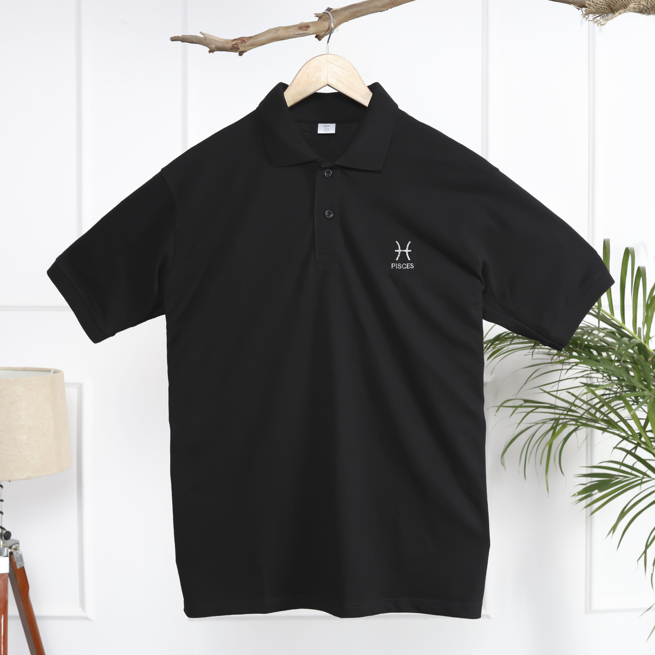 Step into timeless sophistication with a personal touch in Almera Clothing’s Polo Collar T-Shirt for Men, highlighted with the Pisces zodiac symbol in sleek black. Designed for those drawn to individuality and subtle statement pieces, this polo is crafted from soft, skin-friendly cotton that ensures breathability, comfort, and durability.